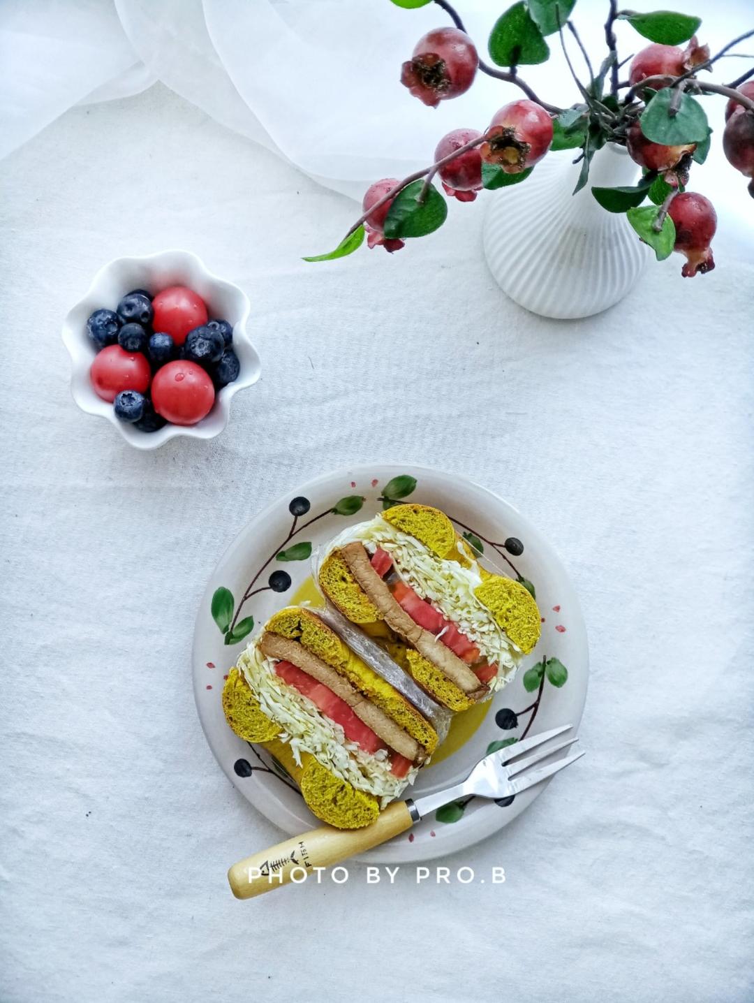 照烧猪排咖喱贝果三明治