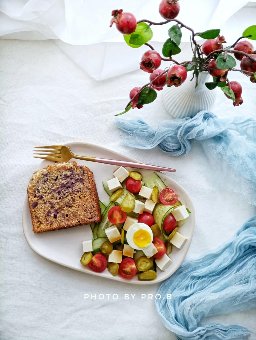 奶香紫薯快手面包+豆腐沙拉