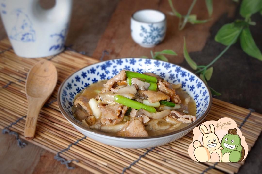 青蒜肉片炒鲜蘑