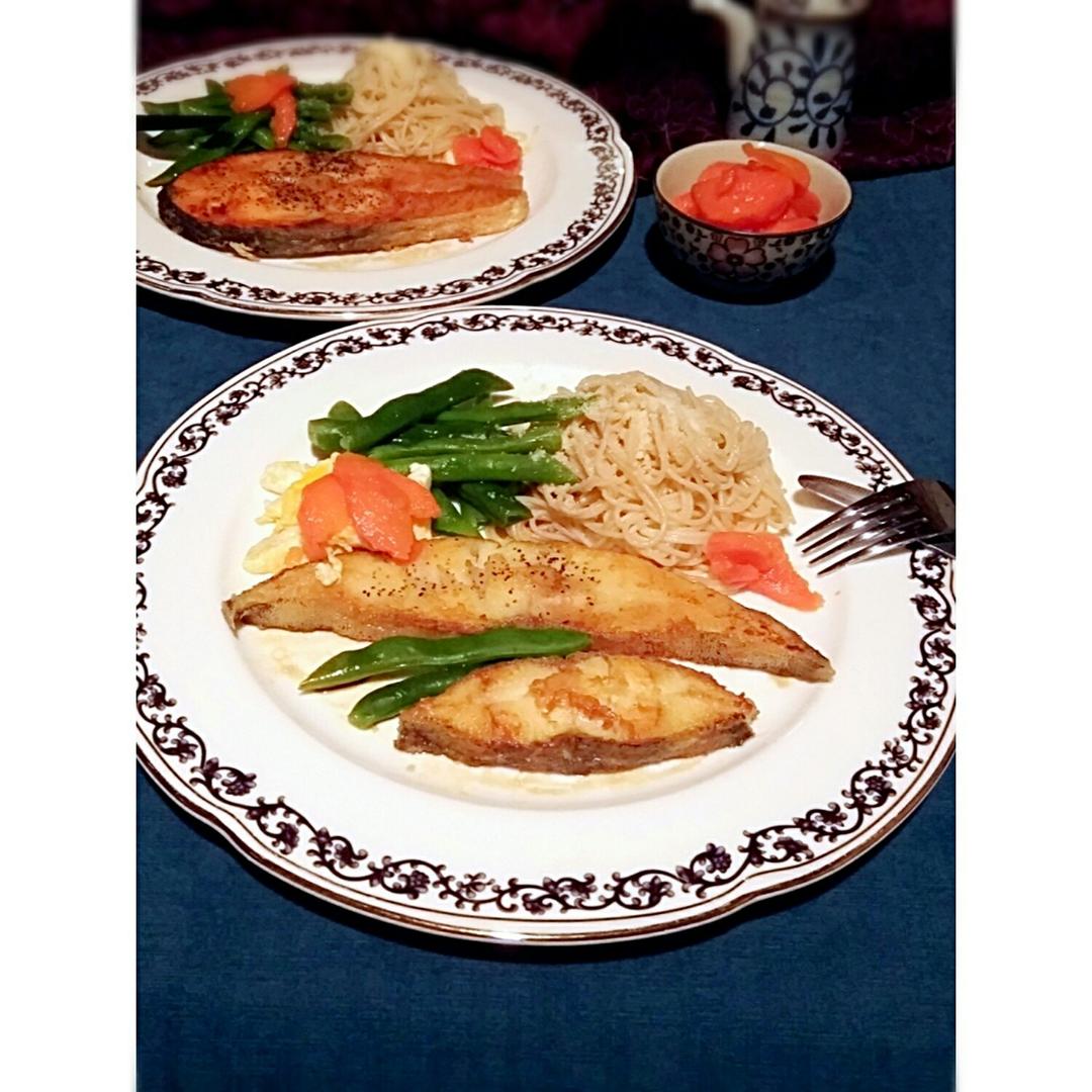 先生不吃三文鱼。给他做了比目魚的…他对...