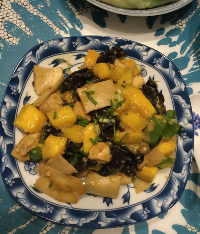 第一次做:挺快手的!由于芒果很甜,菜的口味偏甜,不建议另外加糖。鸡丁不够,加了杏鲍菇,青椒和木耳。下次多放些鸡丁,再试试...