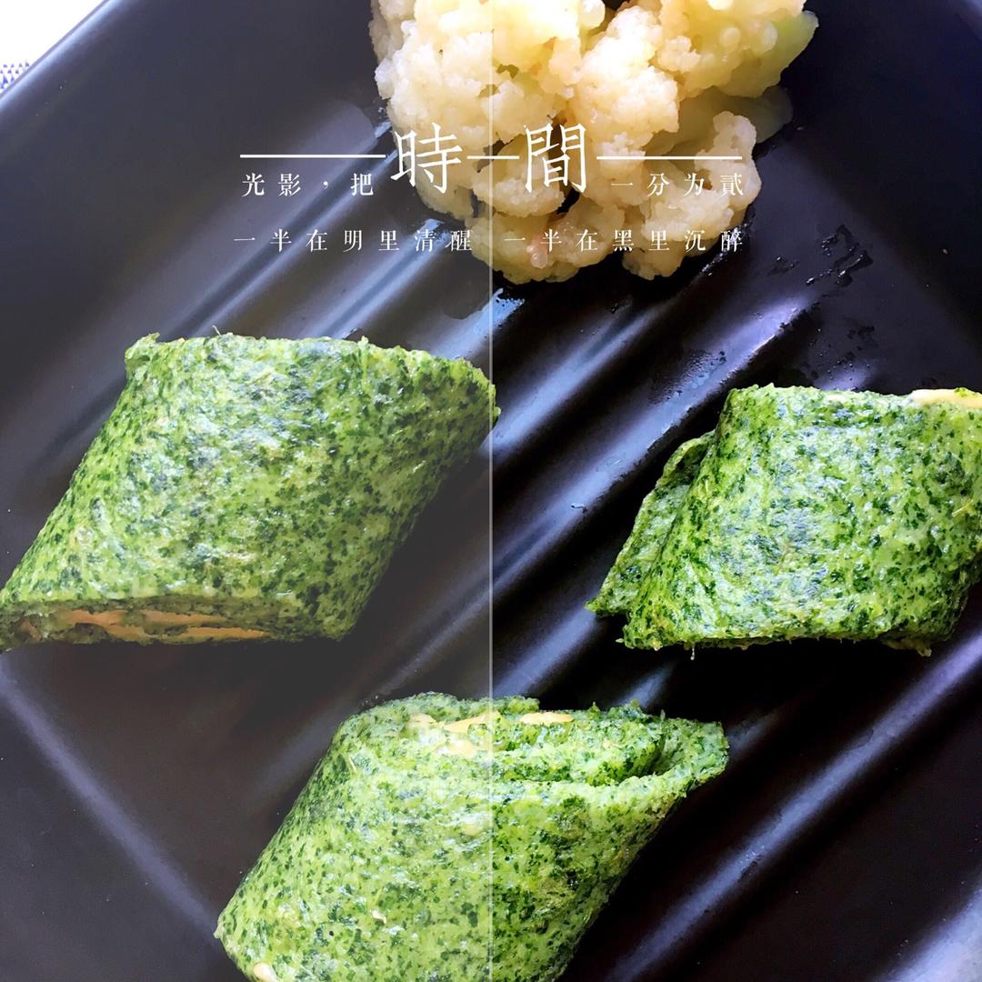 今天主题是菠菜 菠菜榨汁做了菠菜面条,菠菜泥做了鸡蛋菠菜奶酪卷,一点儿不浪费😊 #午餐•2017年...