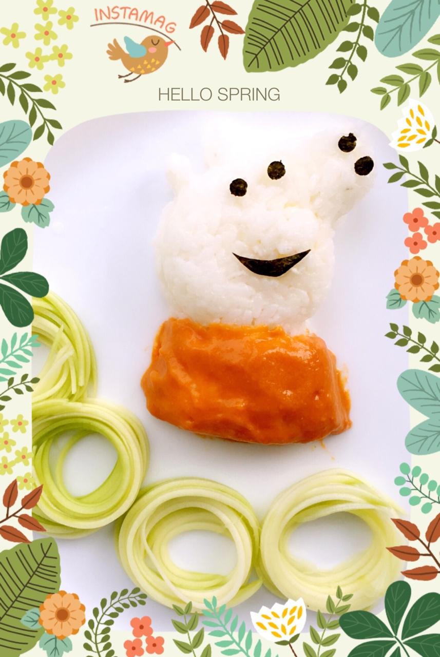 小猪佩奇饭团,三文鱼番茄泥,西葫芦丝
