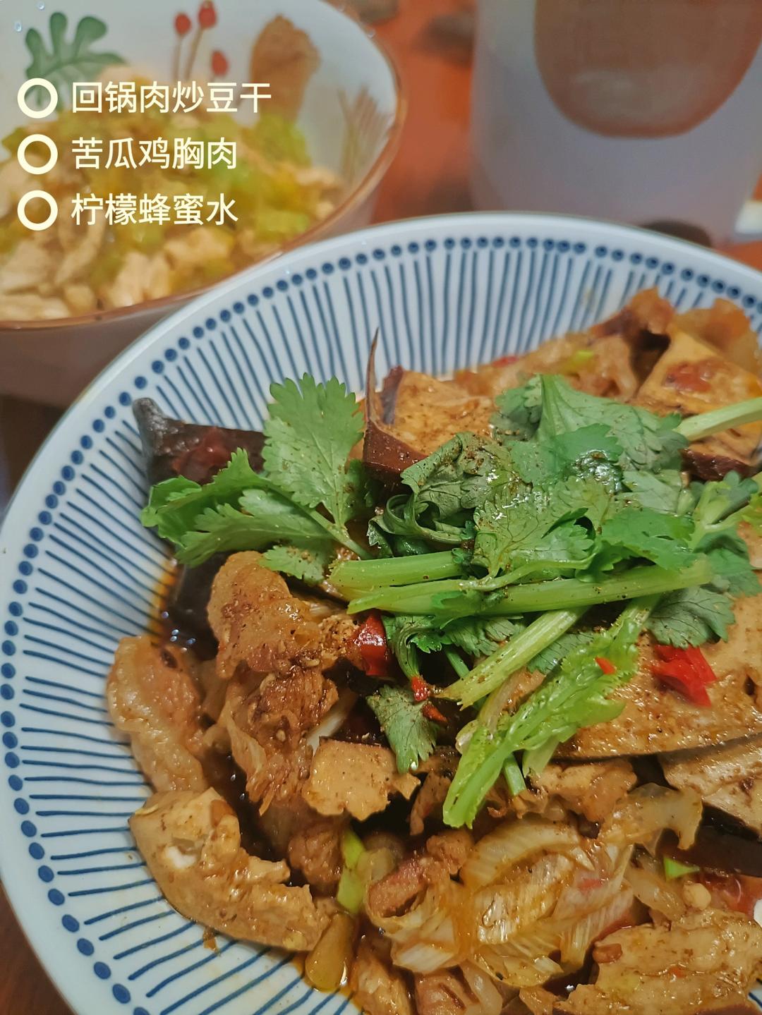 素鸡这次没有炸,就清炒,还煮了碗蘑菇烧肉汤。一荤一素一汤。
