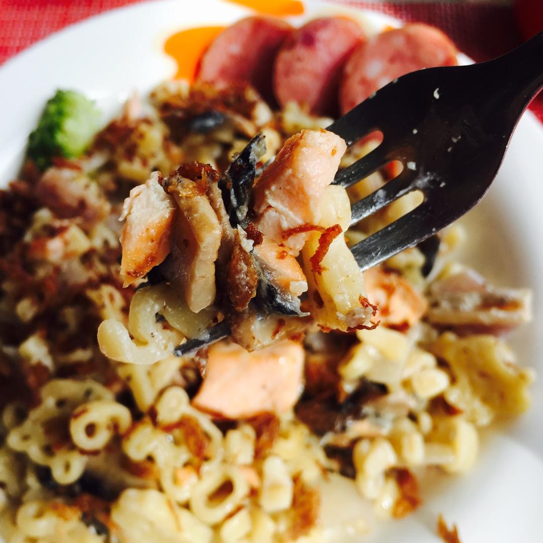 味道不错……口蘑用三文鱼油炒的,吃的时候一股三文鱼味道~