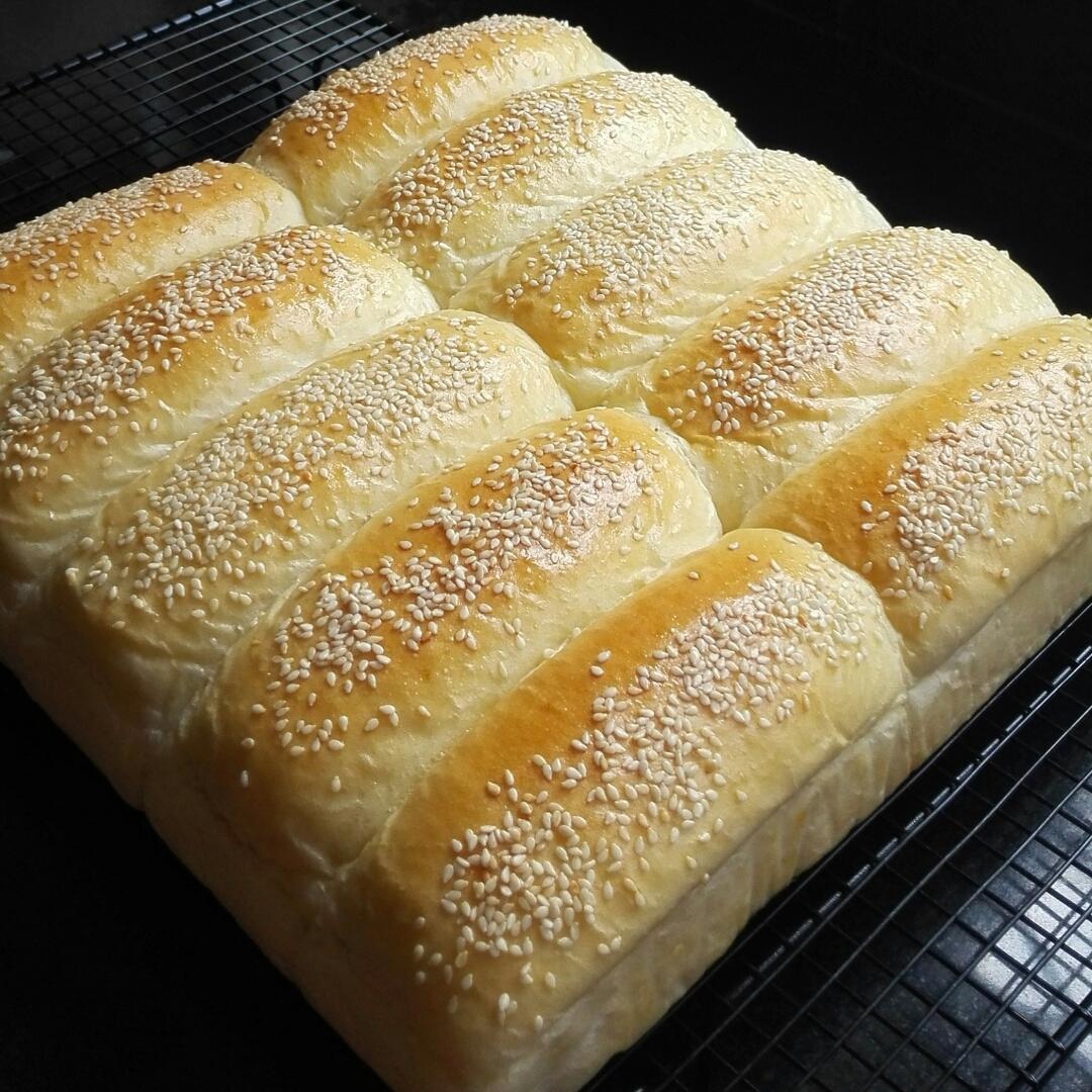 二刷醇奶排包。排包造型方便,口感松软,最主要是买了一斤白芝麻,做排包...