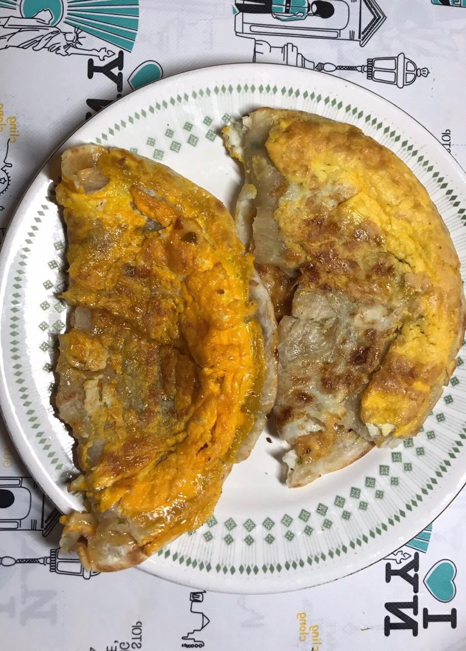 蛋饼对折一下后就成这样了