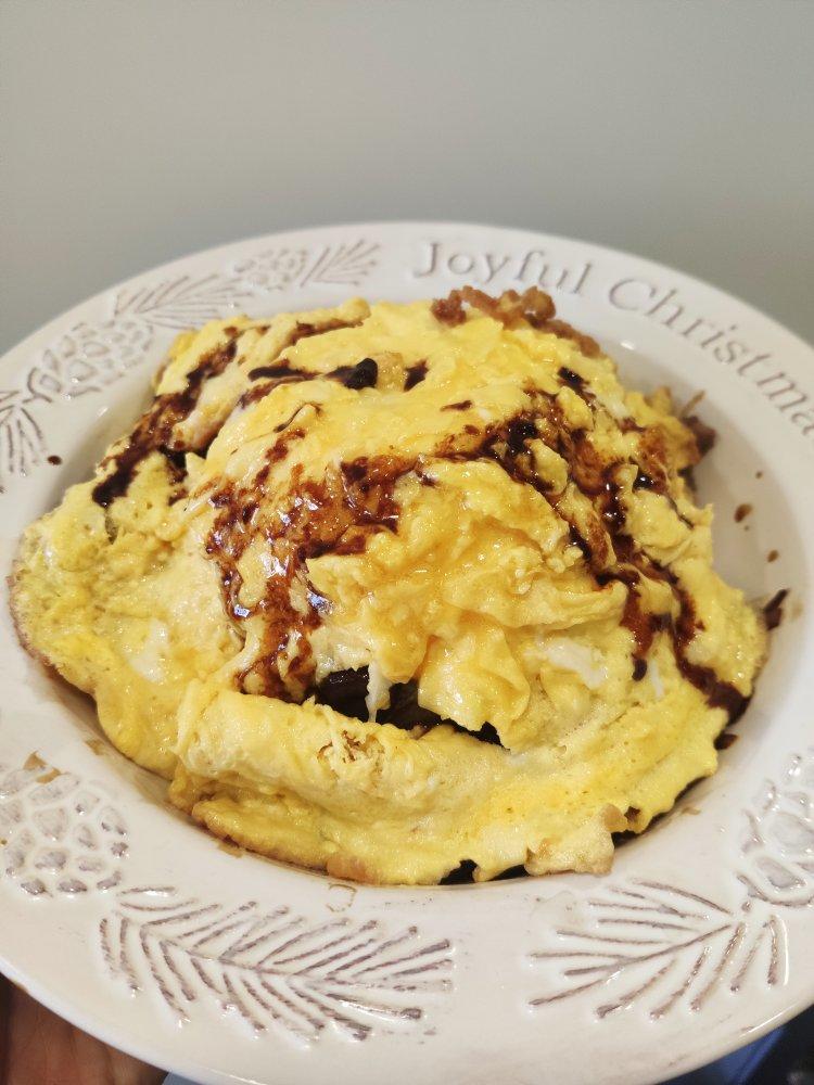 加了肥牛片,洋葱炒好,加了2个鸭蛋