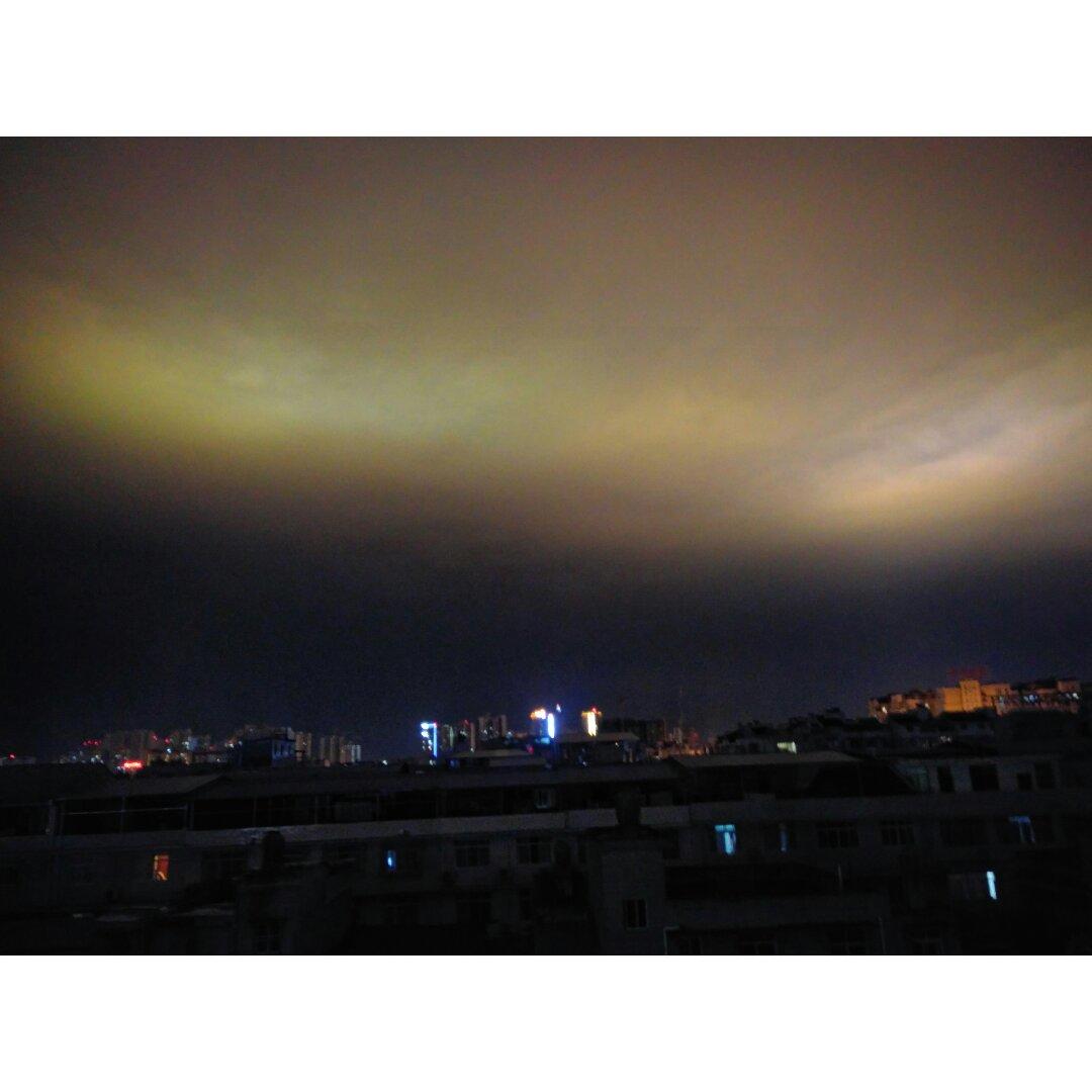 晚上十一点的天空明亮如白天,会是灯光照射形成的吗?图一和图二。在我准备录小视频的时候,就像...