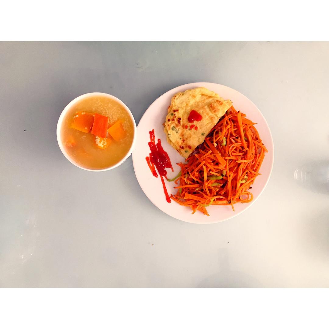 胡萝卜 鸡蛋煎饼&小米南瓜粥