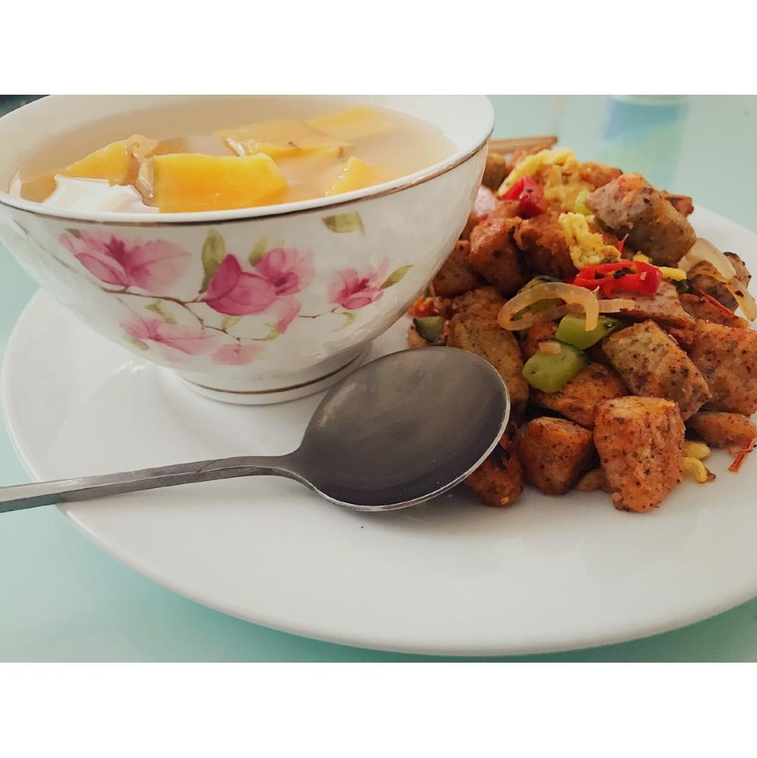 鸡蛋炒杂粮馒头&小米红薯粥
