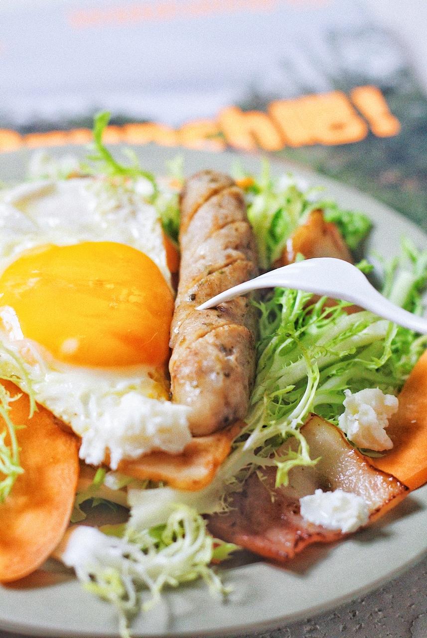 自制香肠,煎蛋,培根,苦菊,奶酪,胡萝卜~brunch吧!brunch咯!