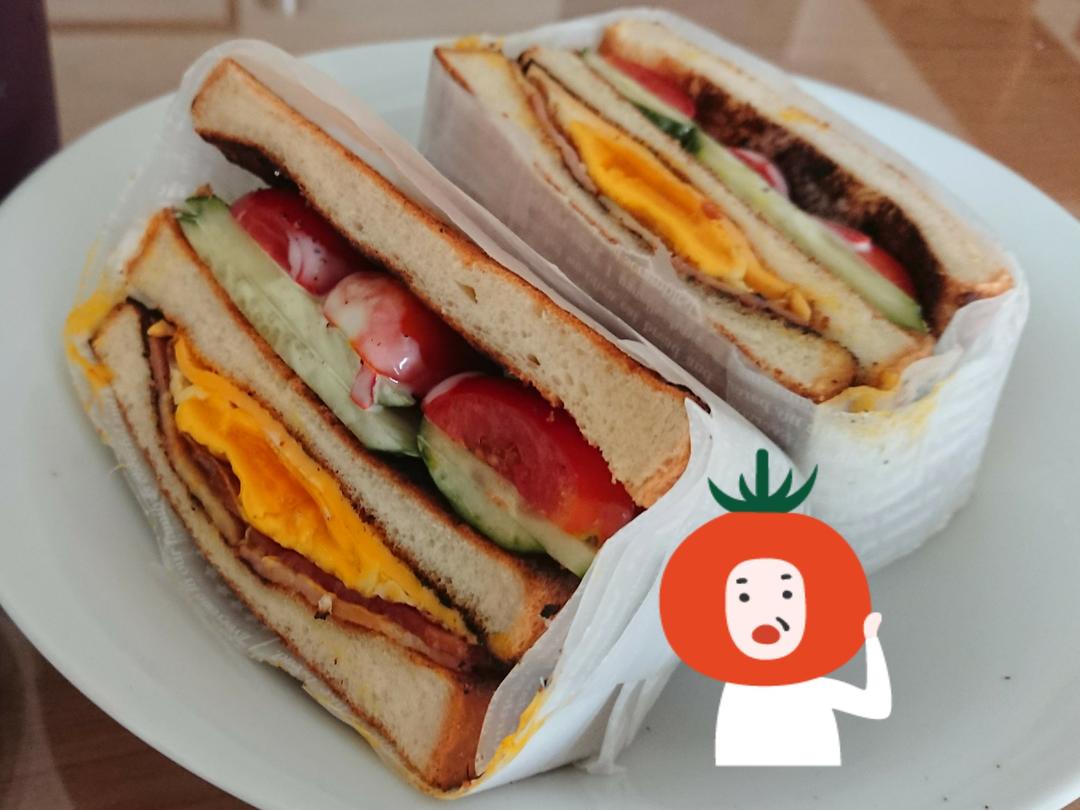 番茄黄瓜鸡蛋培根三明治