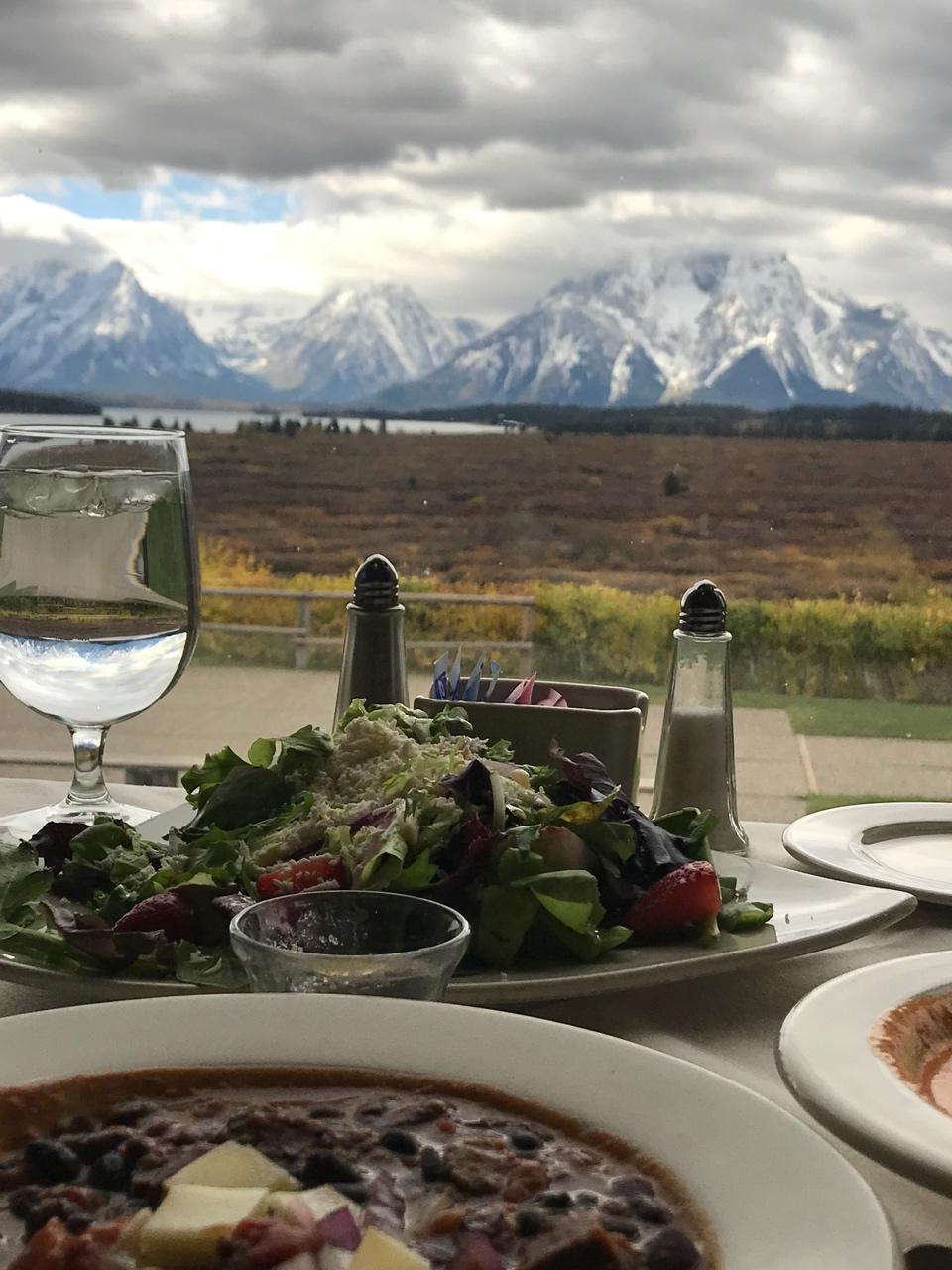 在大提顿国家公园的这家壁画餐厅里,吃什么已经不重要了,关键是View是顶级的了,不过汤和汉堡还是好好吃 #午餐•2017...