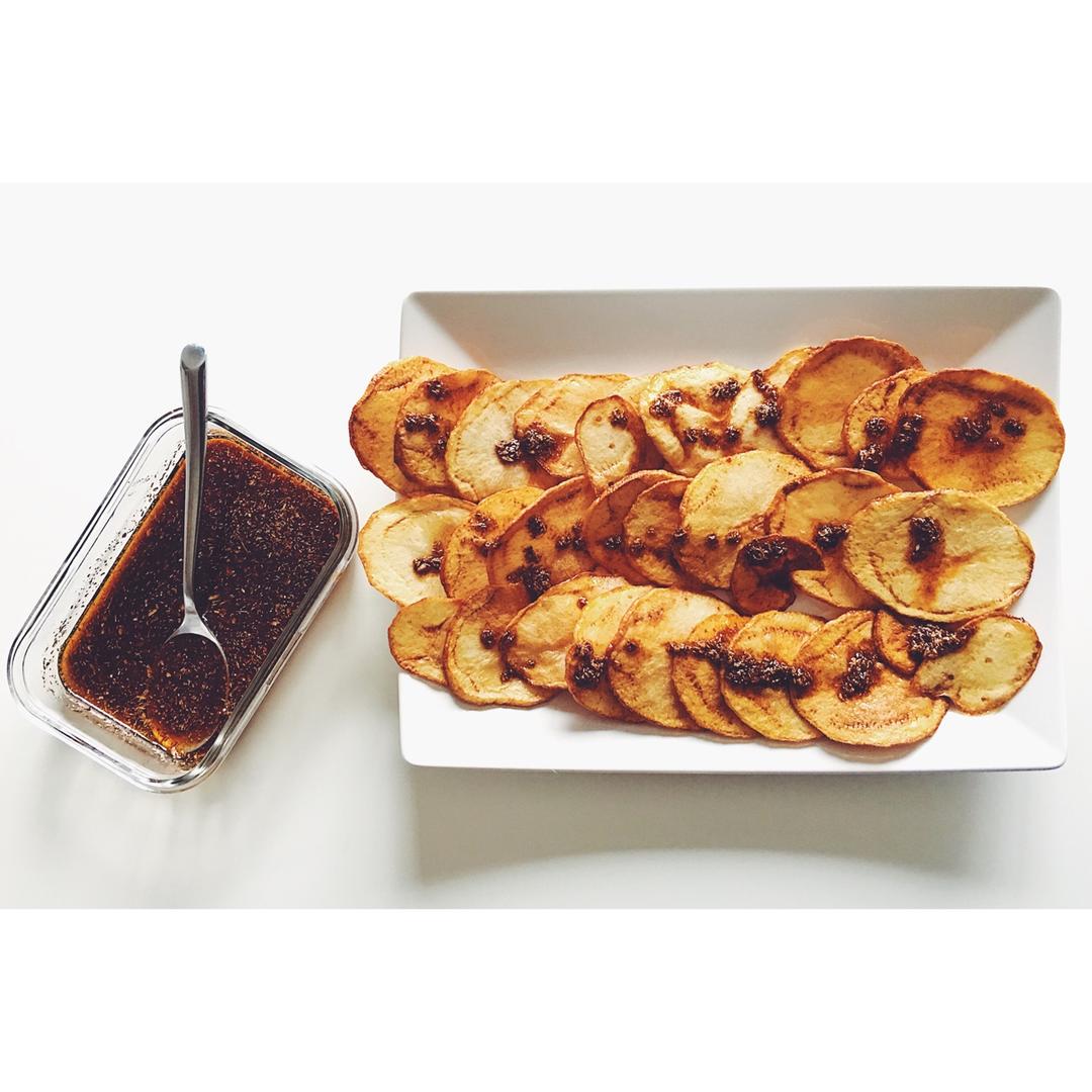 自己做炸薯片配哈里撒辣酱😋