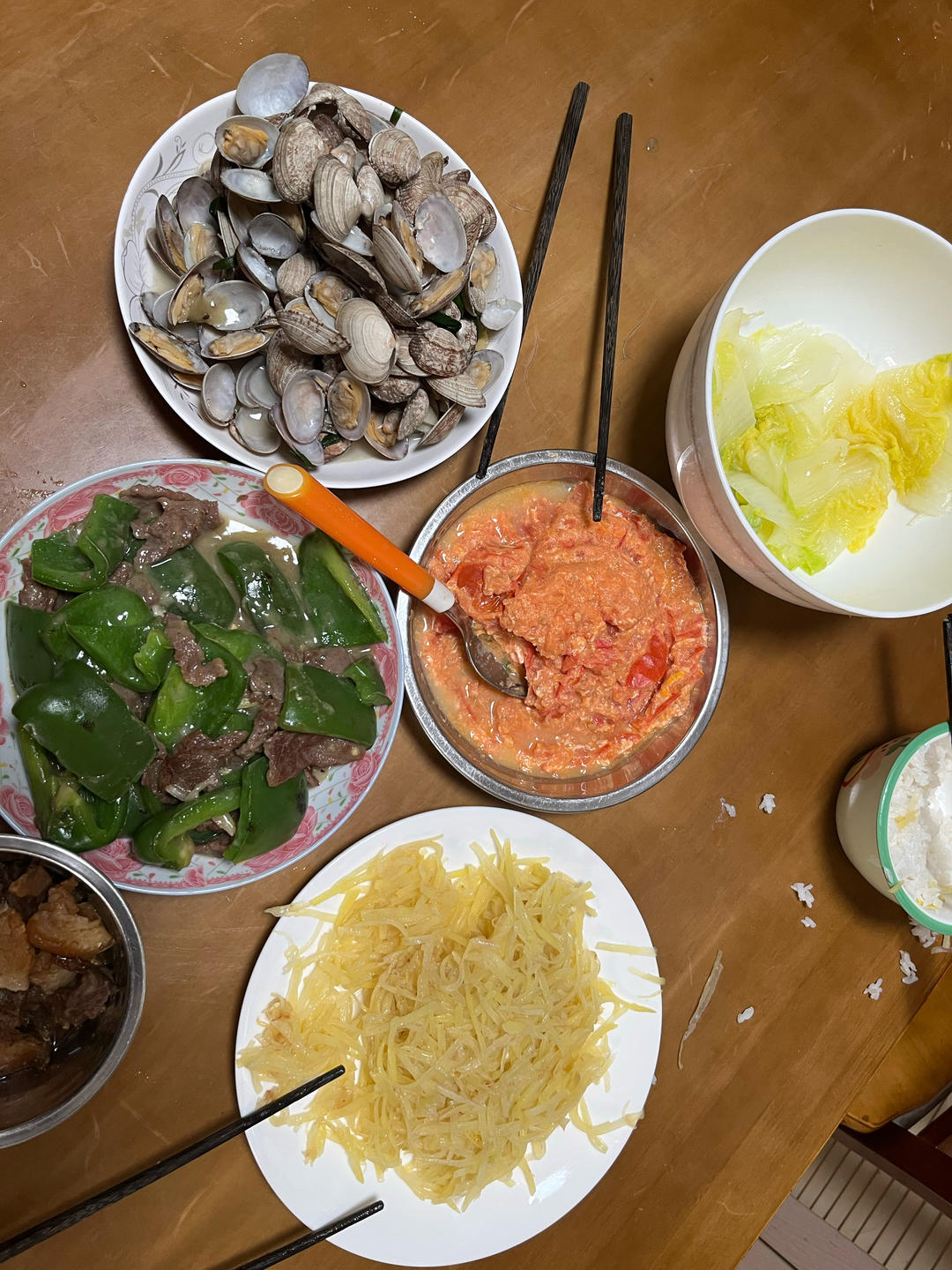 1️⃣灯笼椒炒牛肉(2分钟)2️⃣花甲⬆️番茄炒蛋4️⃣炒土豆丝5...