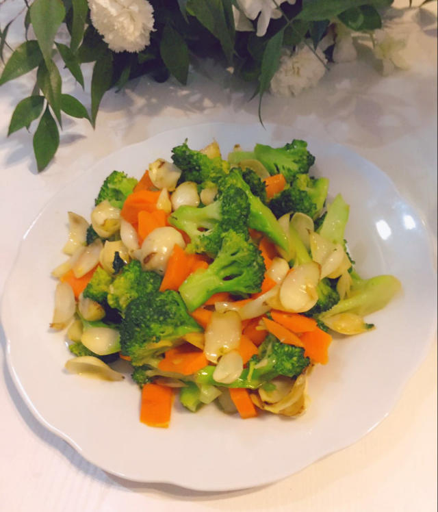 我在厨房间炒西兰花。