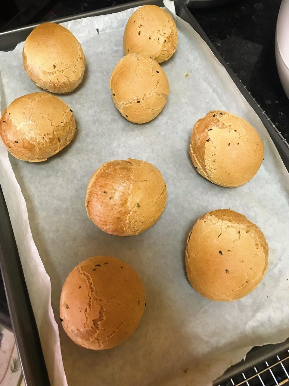 在韩国店买的预拌粉,自帶菜谱250g粉加一个鸡蛋和70ml水揉成团就能分割成8个烤,356℉烤了35mins,感觉有点久...