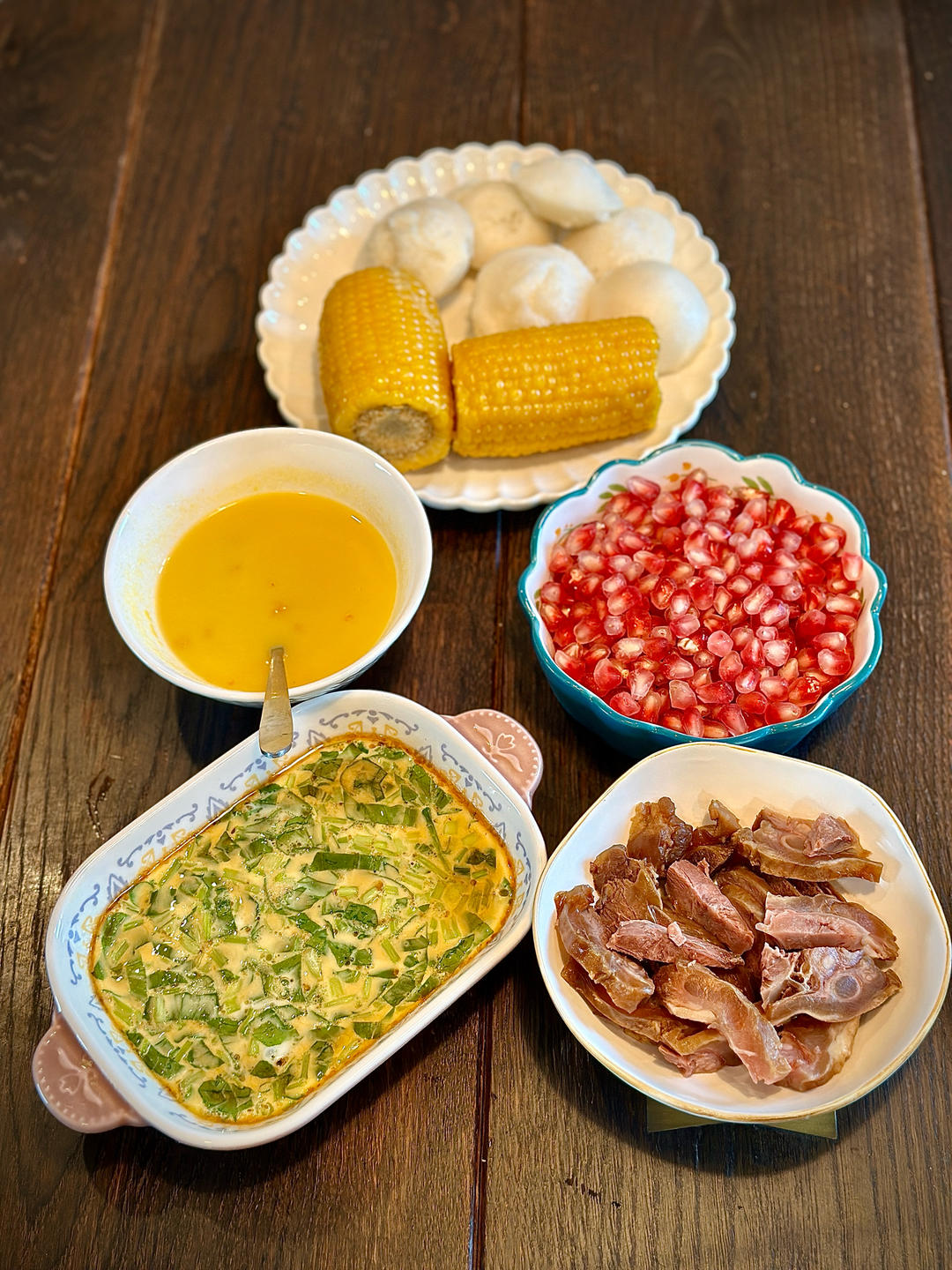 菜蛋年糕汤、松饼奶酪果酱