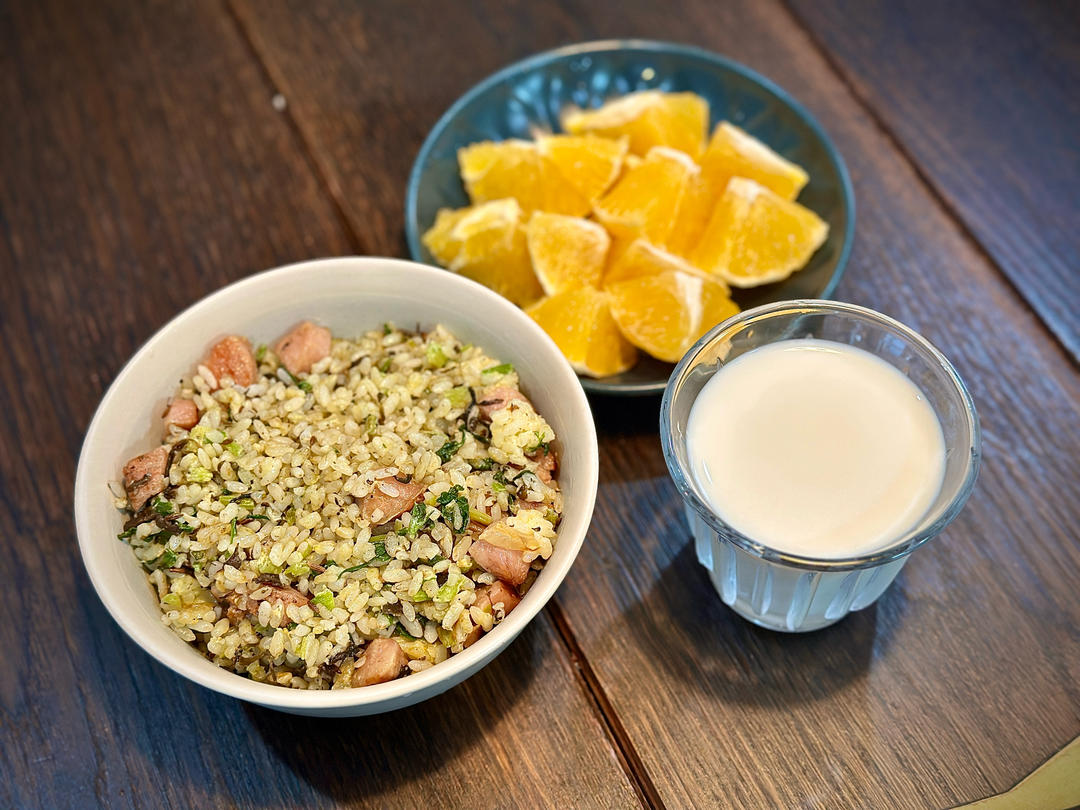 炒饭、牛奶、水果