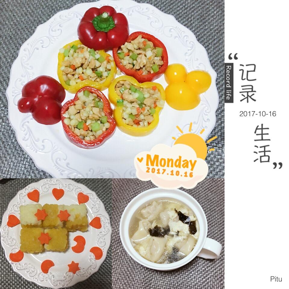 1️⃣2️⃣期:彩椒丁丁圈➕地瓜山药膏➕骨汤混沌➕水果、坚果[太阳][太阳][太阳]
