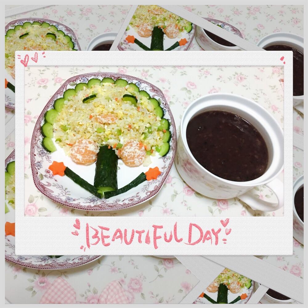 2️⃣期:大树蛋炒饭➕黑米粥➕水果橘子