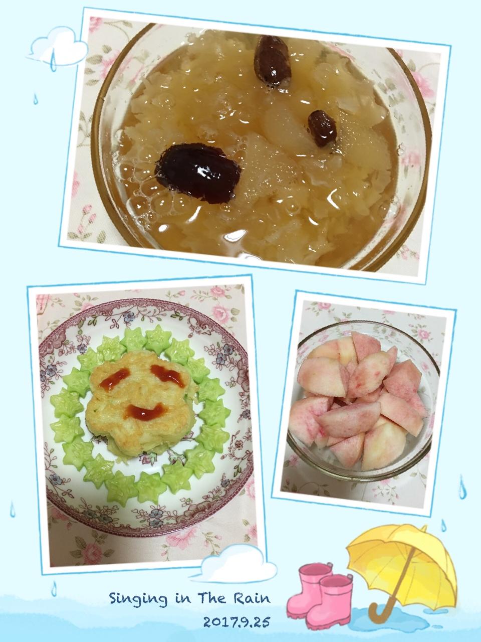 1️⃣期:🥔土豆鸡蛋饼➕银耳羹➕水果桃子🍑