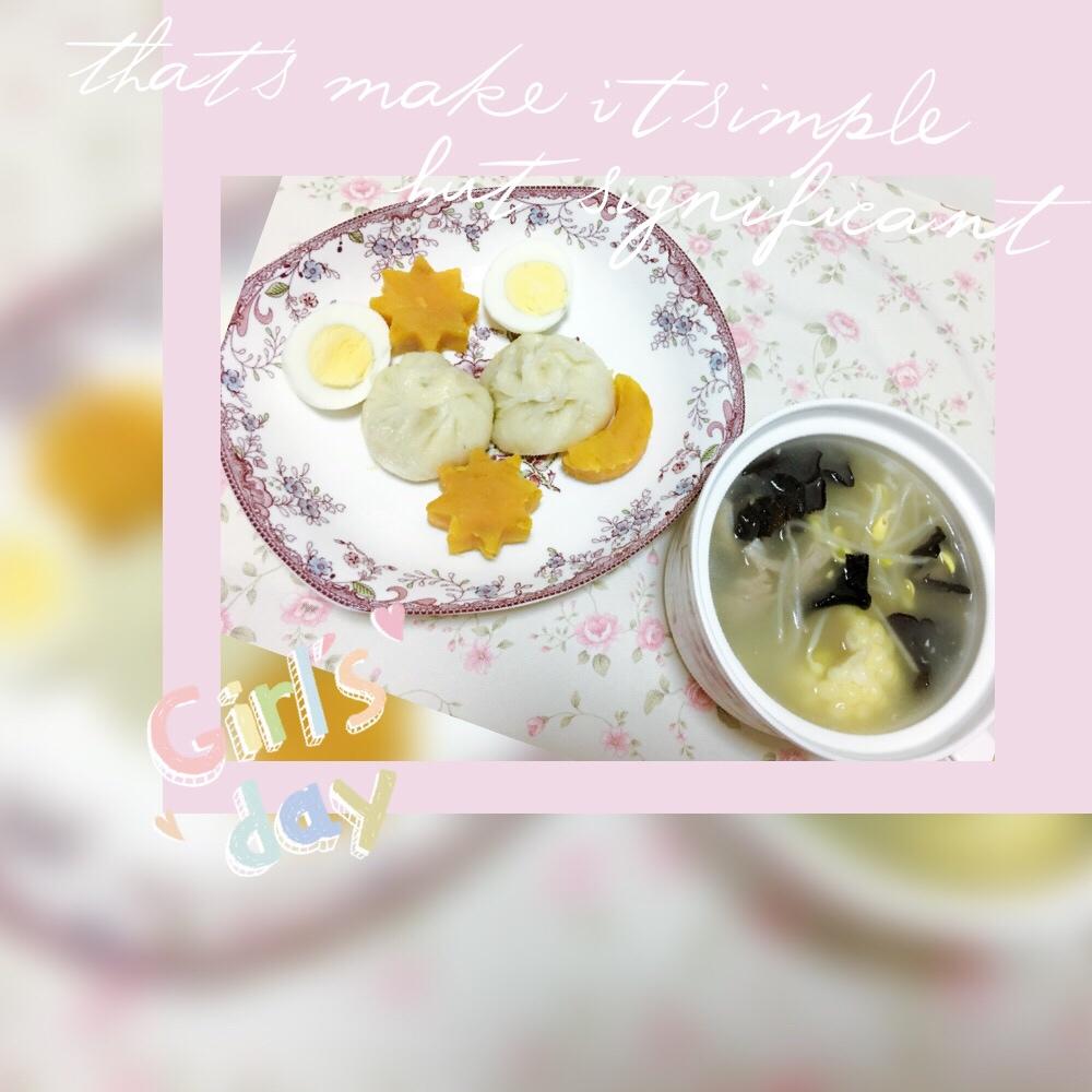 3️⃣期:豆芽玉米排骨汤➕包子➕白煮蛋➕蒸红薯