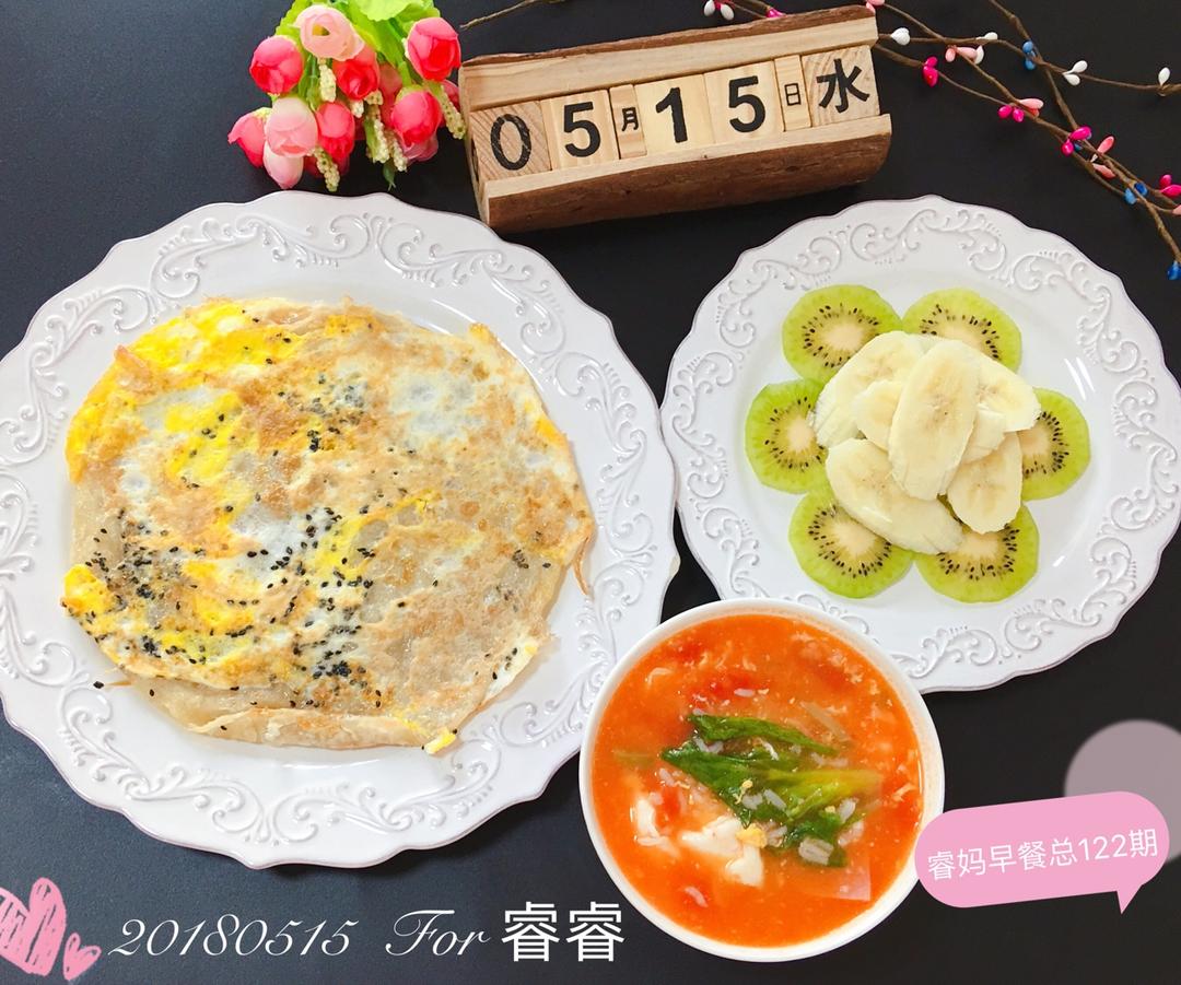 今日早餐:番茄菜泡饭➕手抓饼➕🍌香蕉🥝猕猴桃