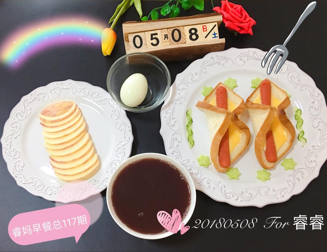 今日早餐:火腿芝士吐司➕白煮蛋➕杂粮粥➕🍎苹果🌺🌺🌺