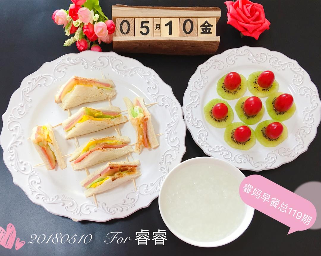 周四,早餐:迷你三明治➕白米粥➕🥝猕猴桃小番茄水果拼🌺🌺🌺