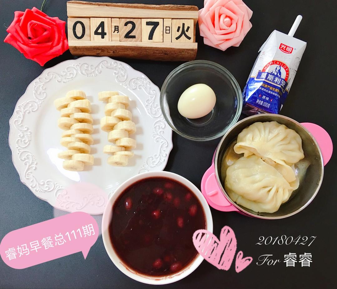 🐶年3️⃣7️⃣期早餐:素蒸饺➕黑米粥➕白煮蛋➕酸奶➕🍌香蕉🌺🌺🌺