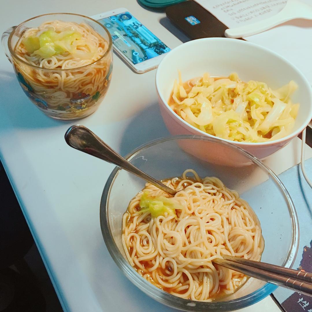 午餐吃两个辣椒的炒包菜,一边吃一边流鼻涕,再加上那碗好吃得不要不要的面