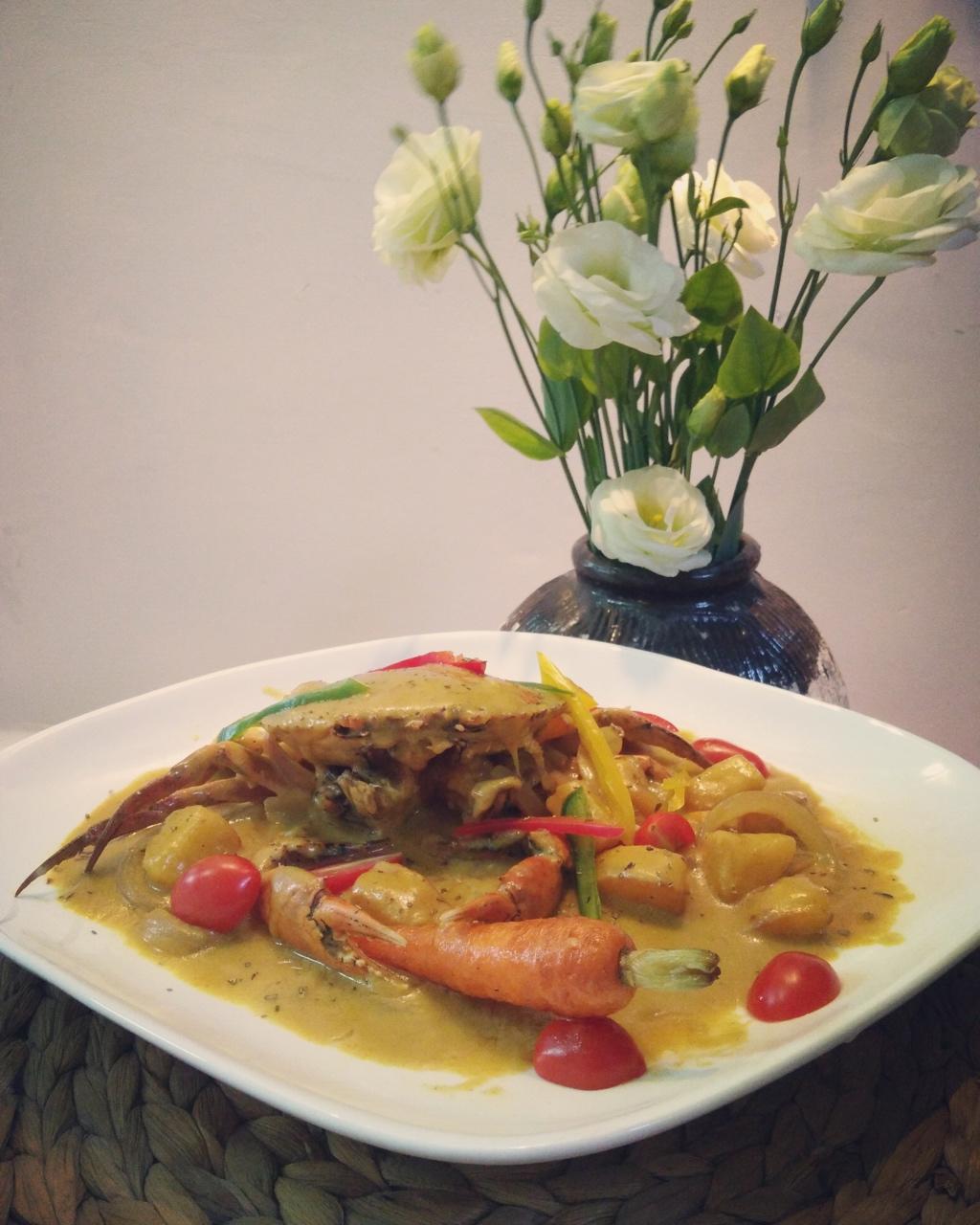 泰式咖喱青蟹…除了咖喱,还要用到椰浆和牛奶,这样才能突出咖喱的香浓,同时咖喱汁又显得柔和!啃螃蟹,汤汁拌饭,吃的欲罢不能...