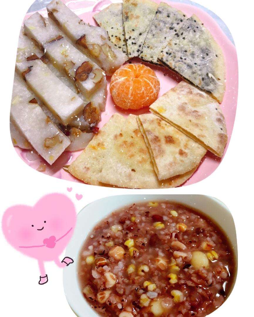 元气早餐-烙饼,崇明糕,配芡实杂粮粥