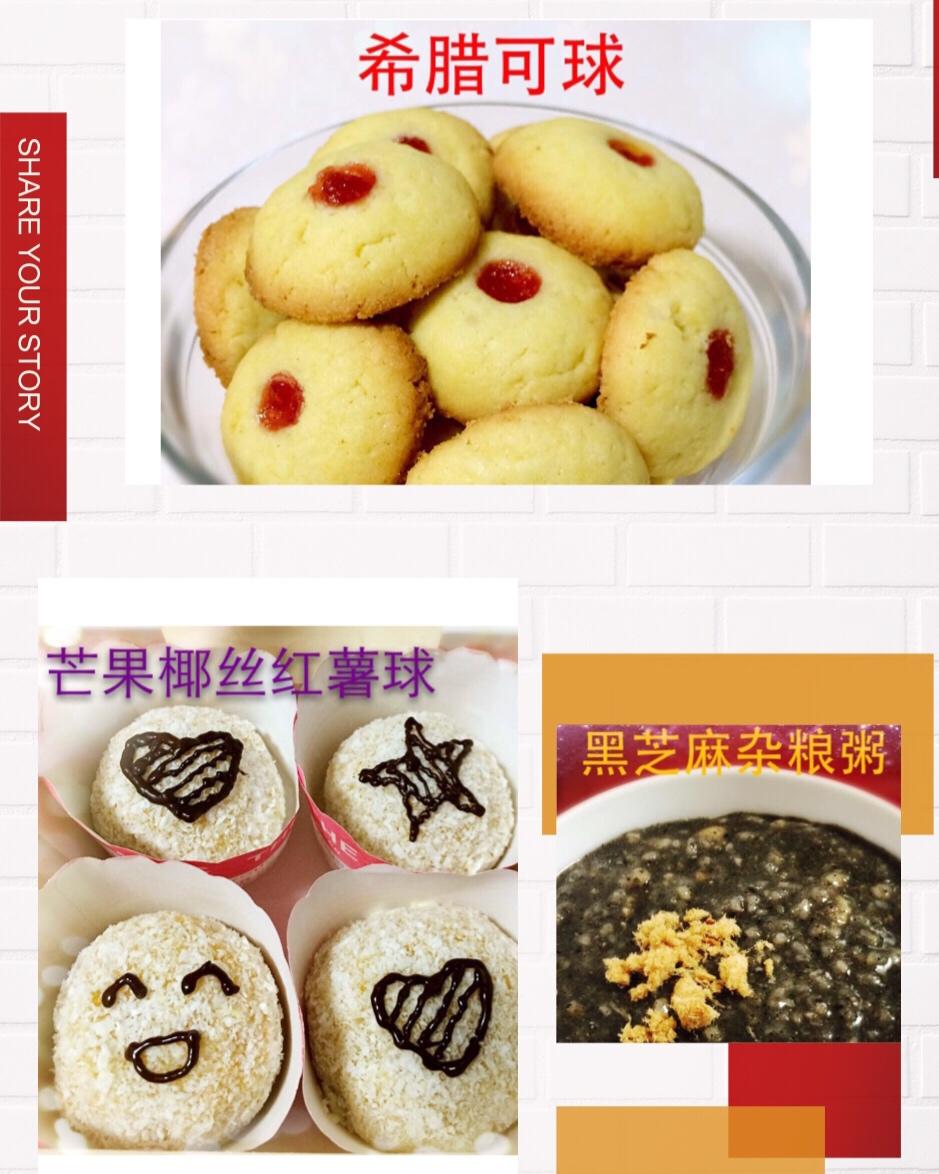 元气早餐-希腊可球,芒果椰丝红薯球,黑芝麻杂粮粥🍋