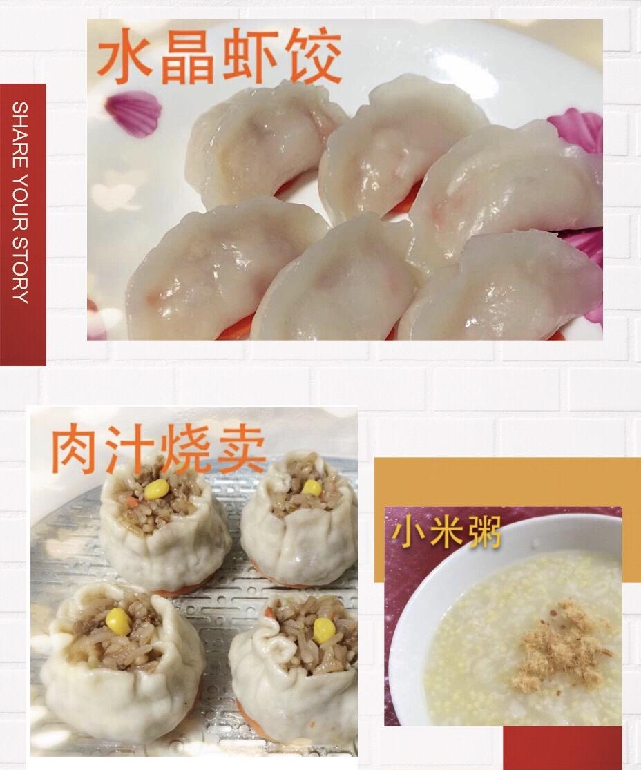 中式早餐-水晶虾饺,肉汁烧卖,小米粥🦐