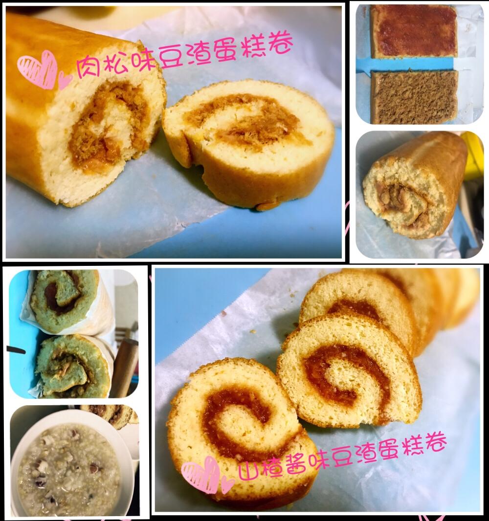 今天吃豆渣蛋糕卷配五谷杂粮粥🌾肉松味是大豆和豆爸的,山楂酱味是豆妈和豆姥姥的,多做了一些给豆妈同事解馋😋 #早餐•201...