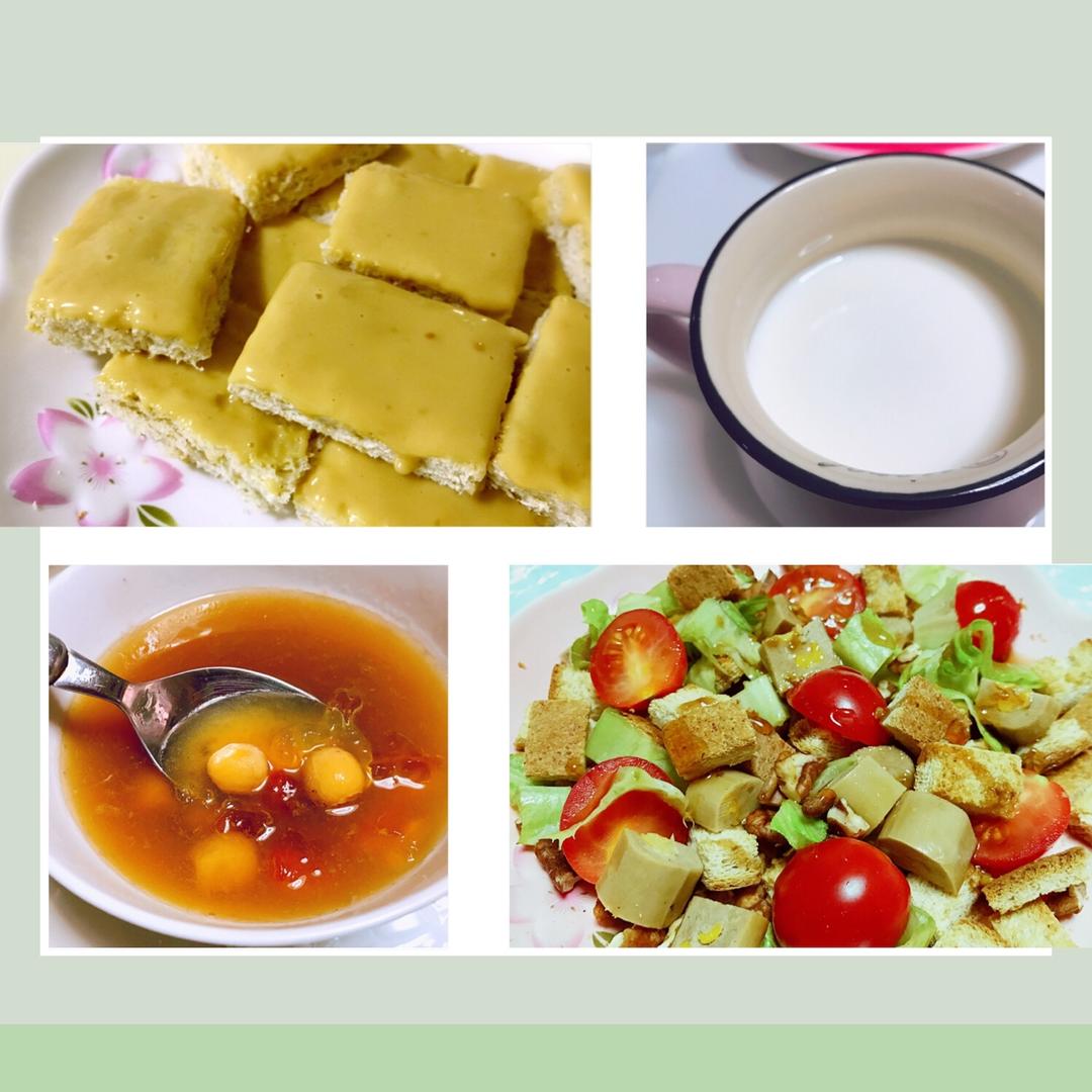 元气早餐-花生酱盖面包配牛奶,油醋蔬果全麦沙拉配桃胶莲子羹🥛吃完上班去啦👪