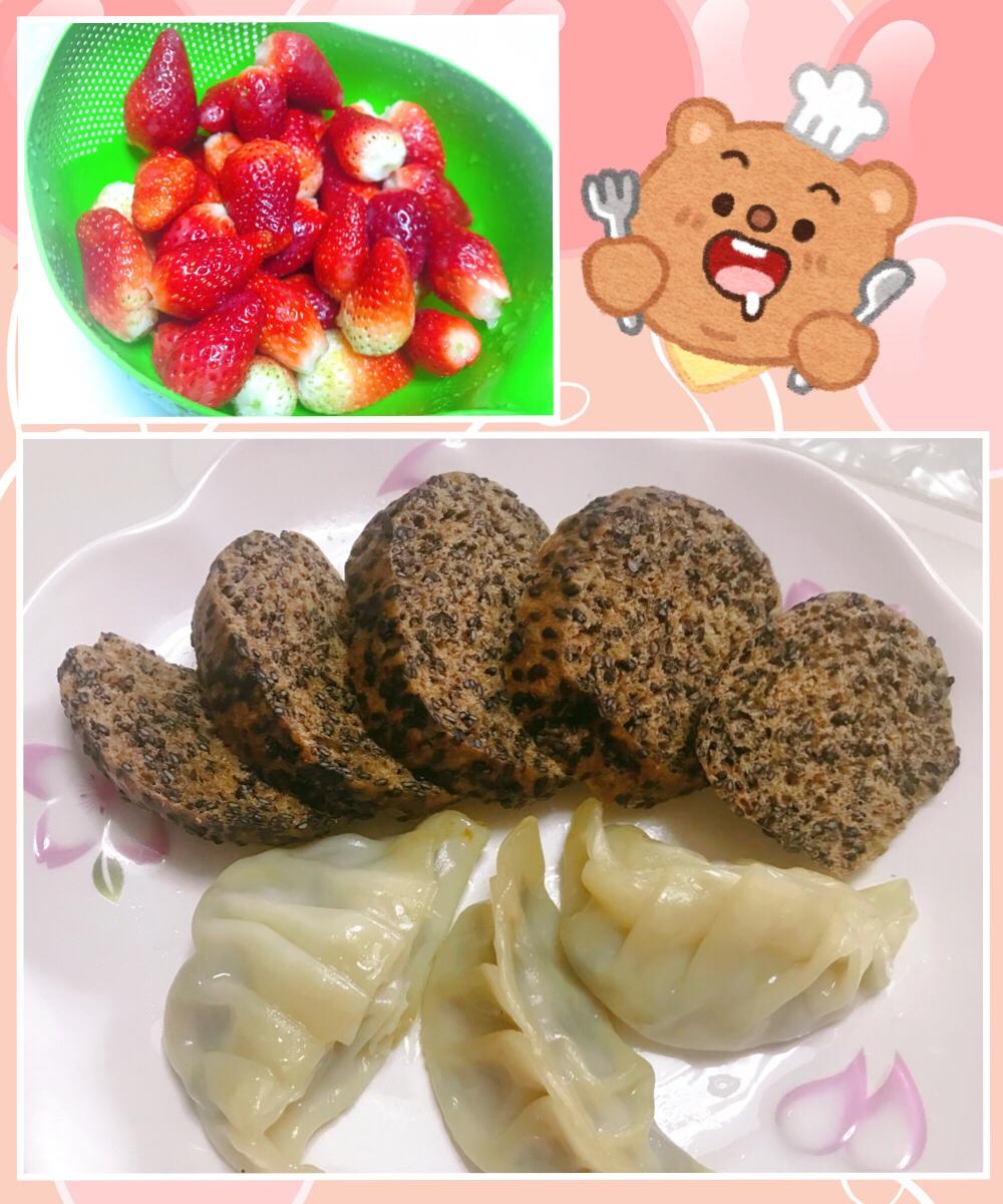 周一早餐-黑芝麻全麦馒头,蒸饺,草莓🍓
