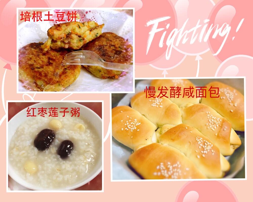 元气早餐-培根土豆饼,咸面包,红枣莲子粥🍀