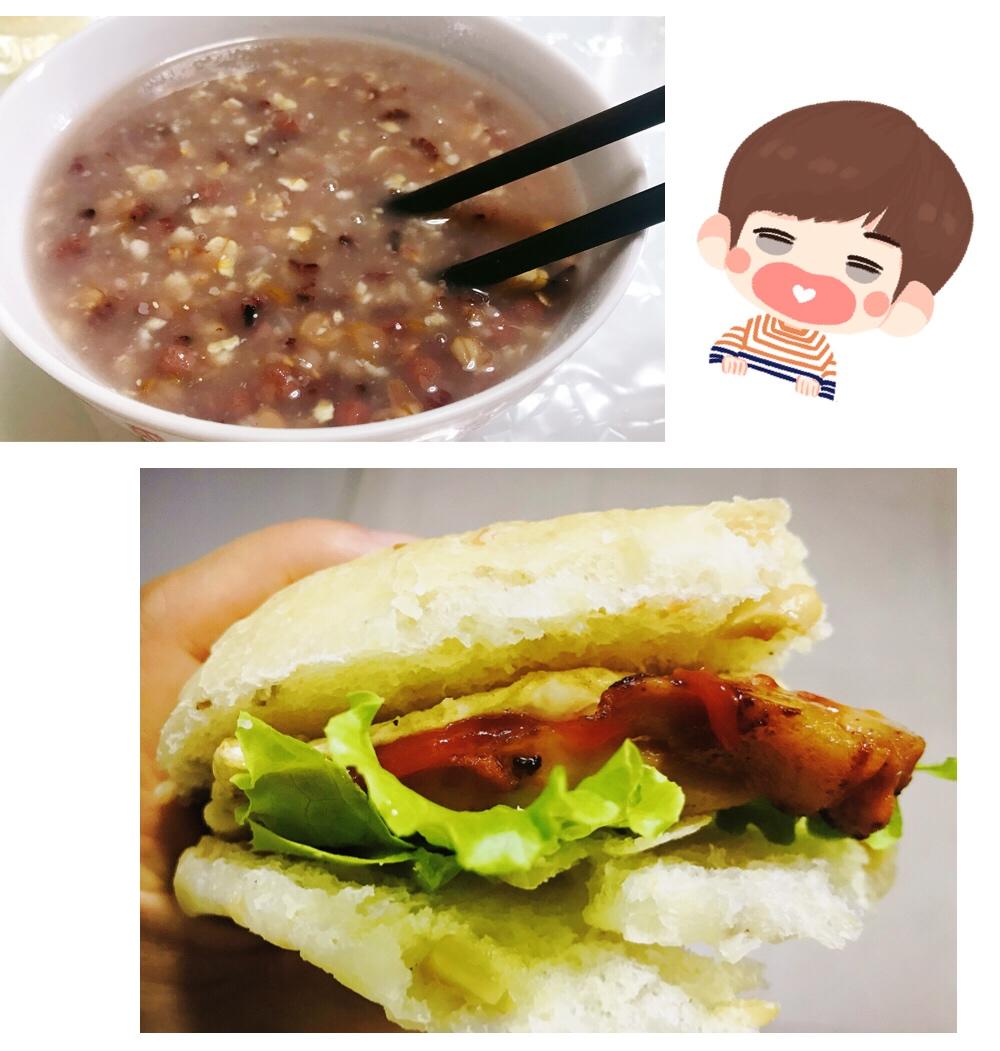 周四早餐-鸡排Ciabbata汉堡,红豆燕麦粥🥣挑战的一天开始,我要元气满满💪🏻