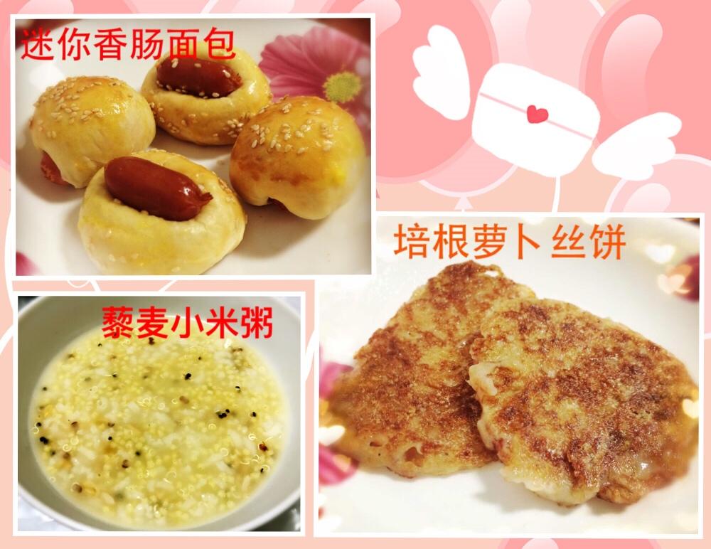 元气早餐-迷你香肠面包,培根萝卜丝饼,藜麦小米粥🌼周末好心情