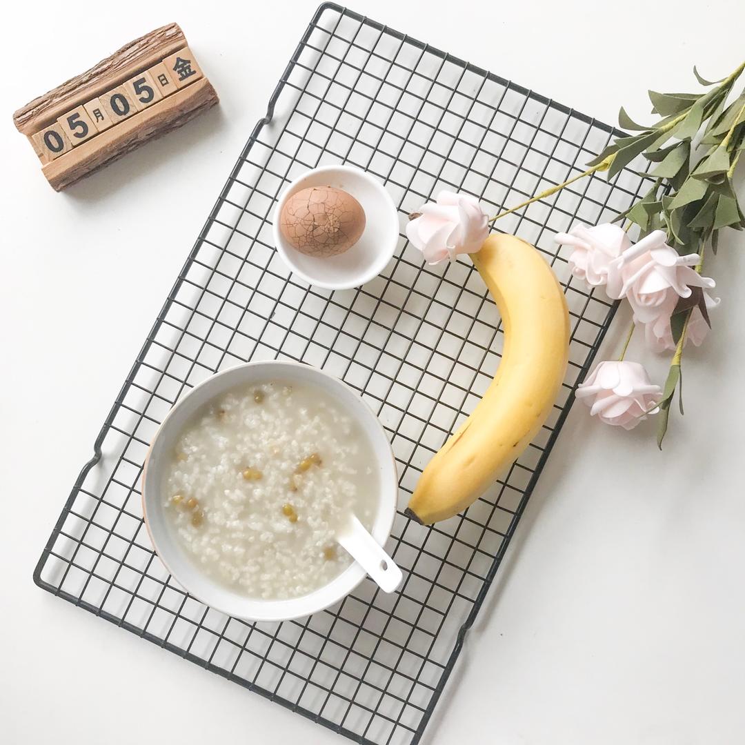 绿豆粥+茶叶蛋+香蕉