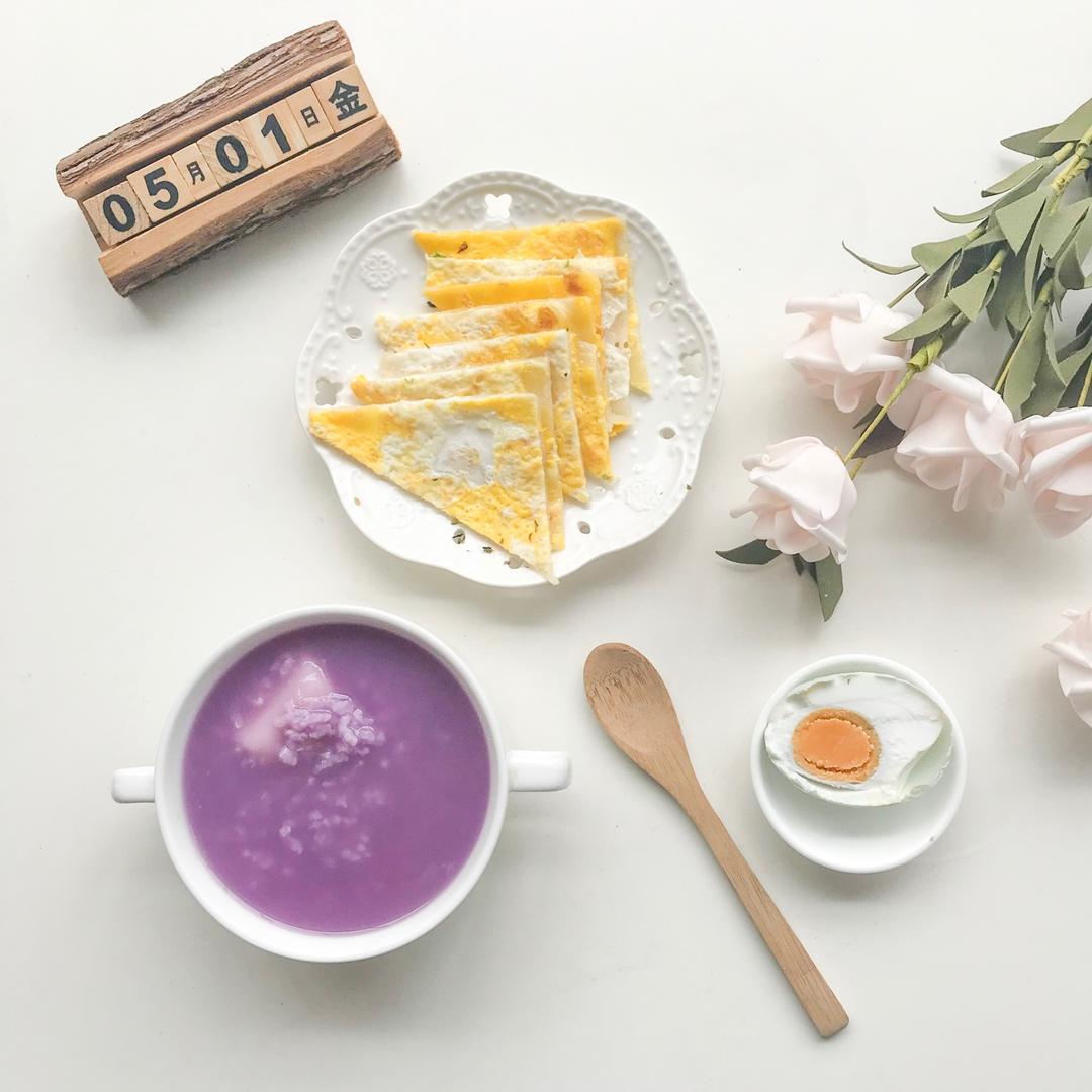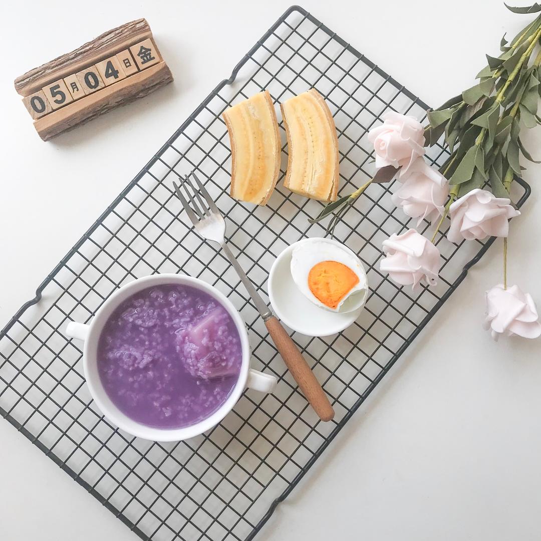紫薯年糕粥+咸鸭蛋+香蕉 #早餐•201...