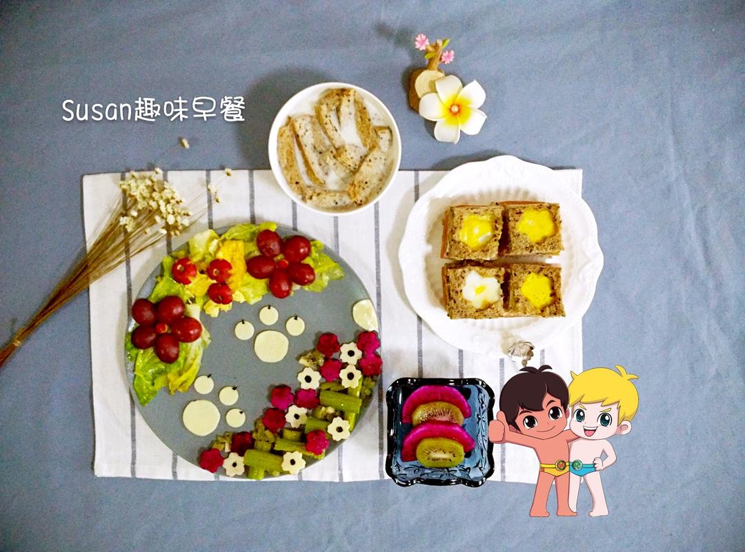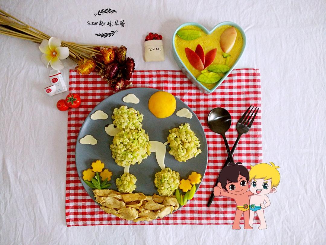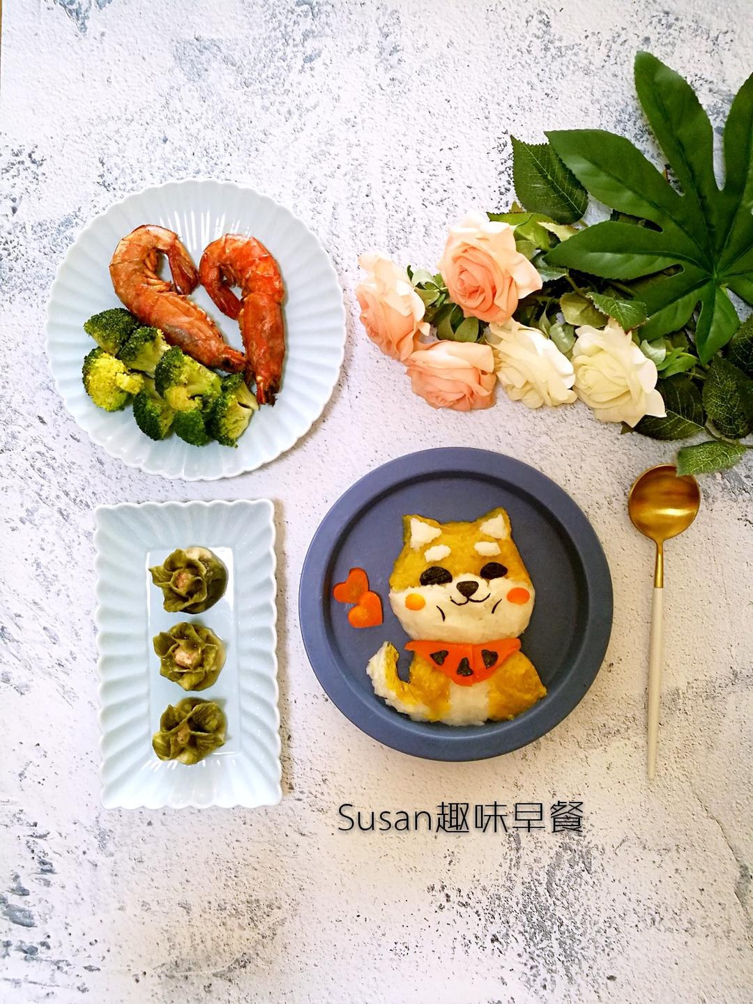 给大家拜年! 早安,Susan趣味早餐第891号,红薯山药小柴犬,白菜花朵芹...