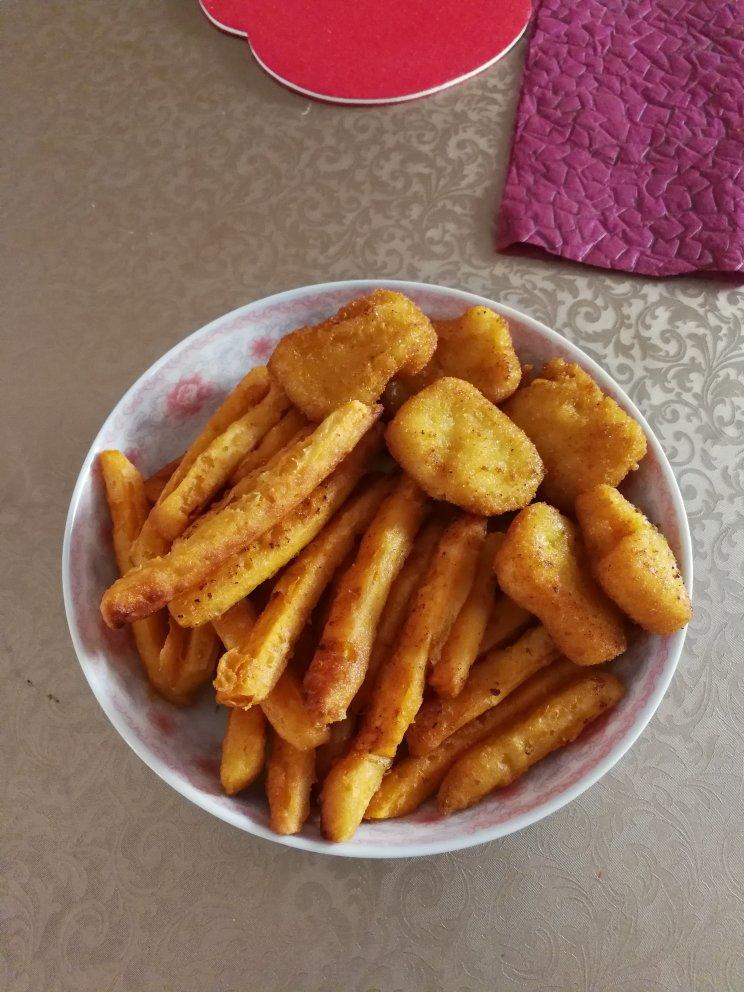 炸年糕,炸红薯条。