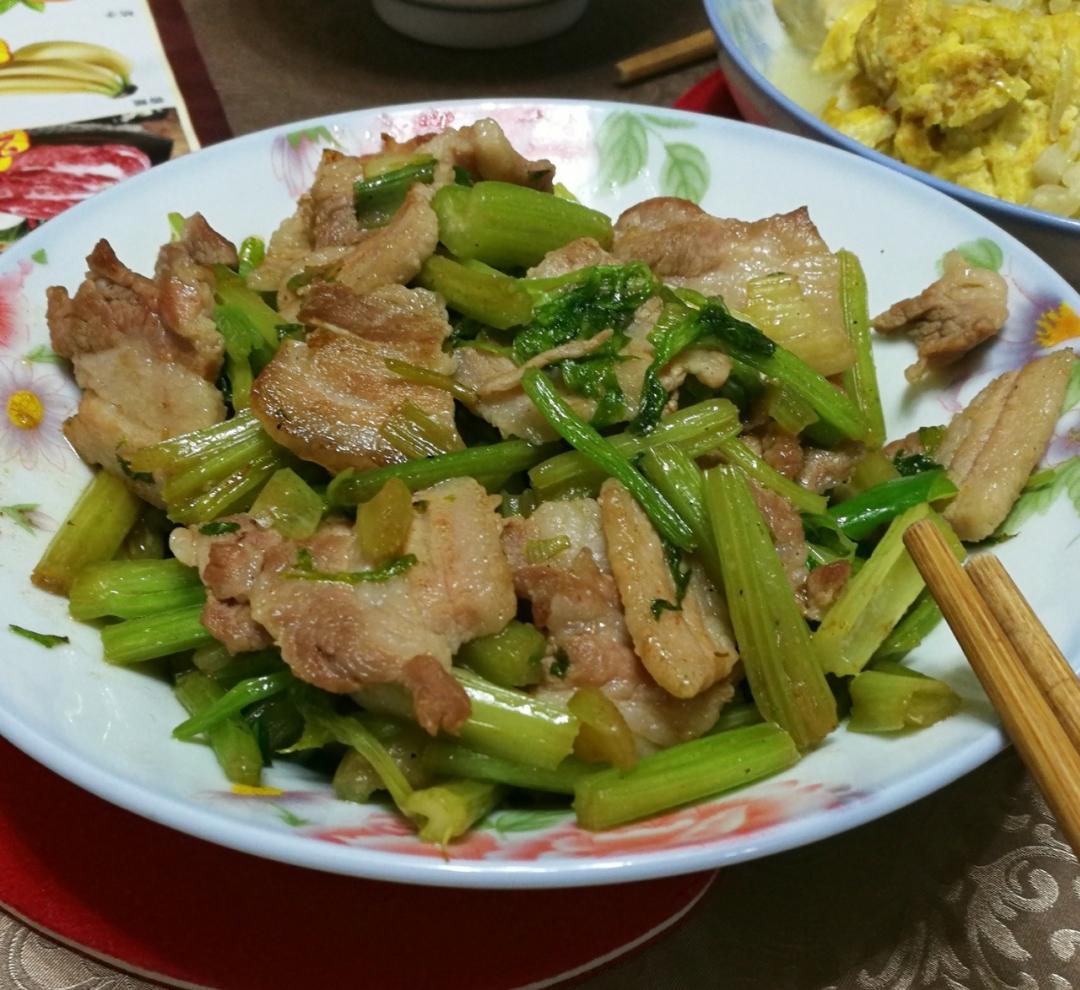 芹菜炒五花肉。肥膘肉太香了。。。