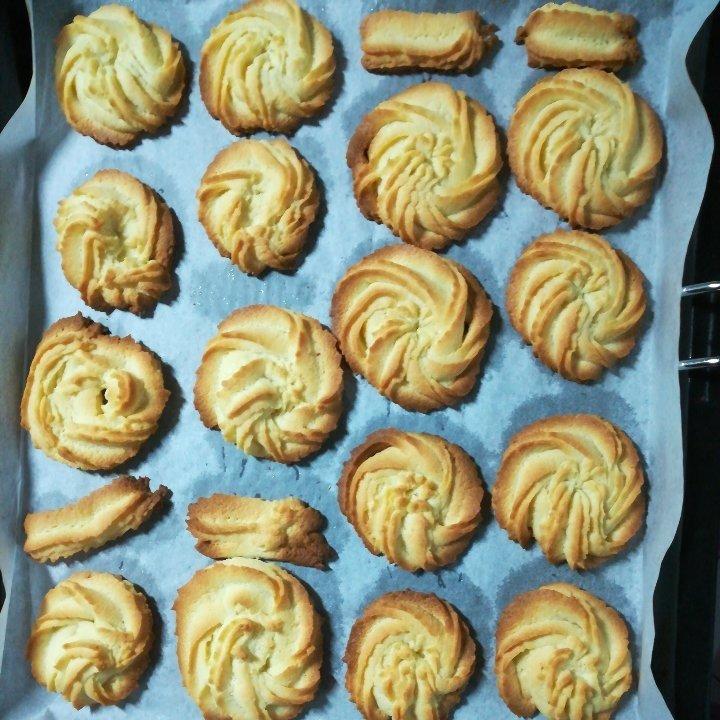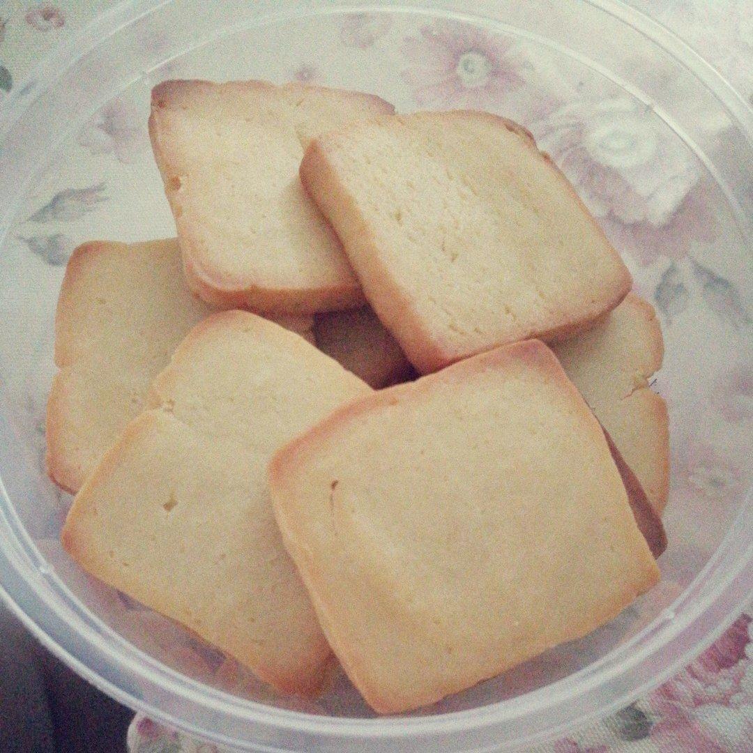 所有材料对半的基础上,黄油80,糖少放了点,喜欢奶味,奶粉多放了10克,面粉少了10克,依然好吃。放蛋黄的时候留下一点刷...