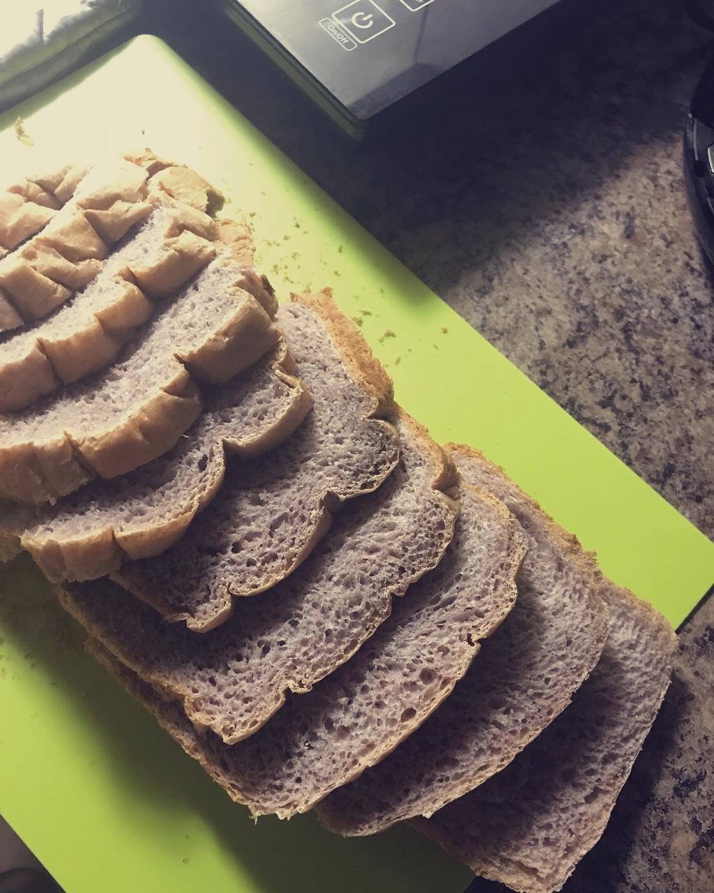 紫薯吐司~没全用普通面粉,用了全麦的。相对健康一点,糖也放的不多。